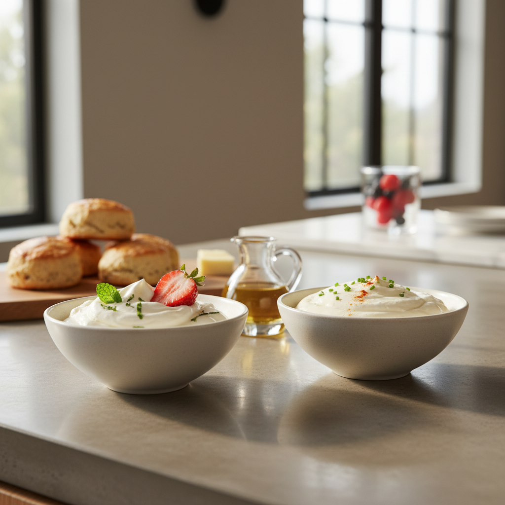 Die Gegenüberstellung von Sahne und Schmand verdeutlicht, dass es sich um zwei grundverschiedene Milcherzeugnisse handelt, die jeweils sehr spezifische Aufgaben in der Küche erfüllen. Sahne punktet als naturbelassenes Süßrahmprodukt mit hoher Hitzebeständigkeit, einem neutral-milchigen Geschmack und der einzigartigen Fähigkeit, durch Aufschlagen ein enormes Volumen zu entwickeln. Sie ist die verlässliche Basis für kochende Soßenreduktionen und klassische Konditorwaren. Schmand hingegen bereichert Speisen durch seine stichfeste Textur und die durch Fermentation entstandene feine Milchsäure. Seine Domäne sind erfrischende Dips, kompakte Kuchenfüllungen und die milde Säurebindung abseits starker Hitzeeinwirkung.