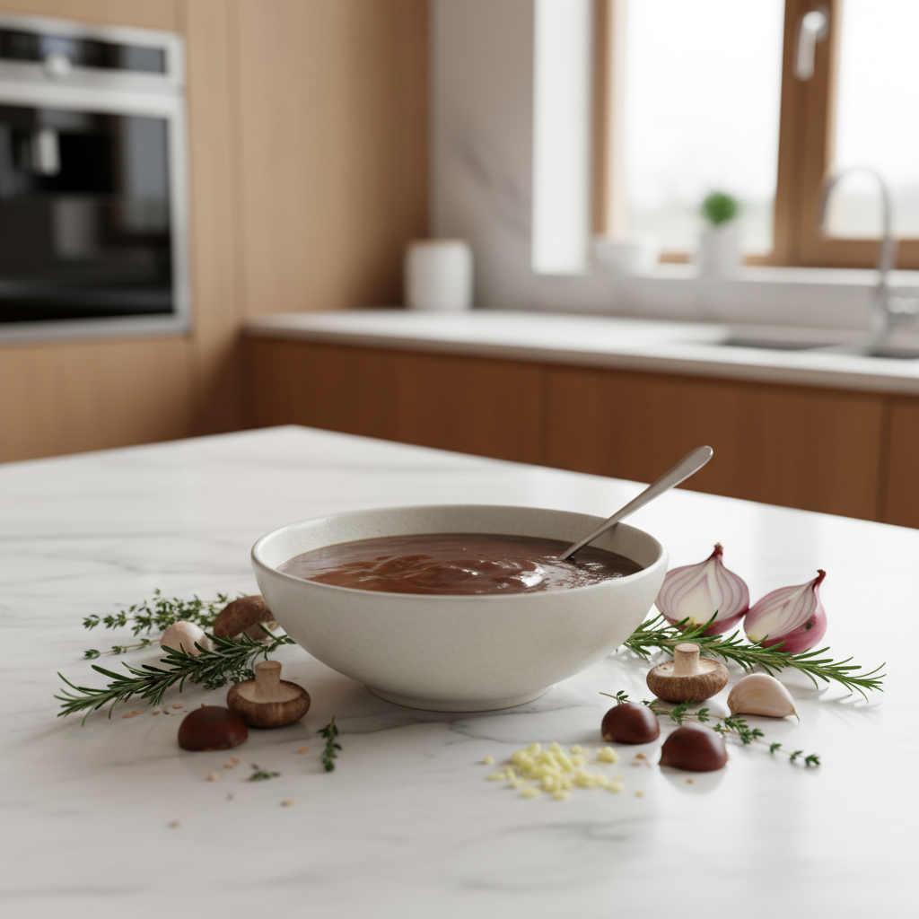 - Röstaromen als Basis: Der intensivste Geschmack entsteht nicht im Topf, sondern im Ofen. Gemüse wie Zwiebeln, Karotten und Pilze müssen kräftig geröstet werden, um die nötige Tiefe zu erzeugen.