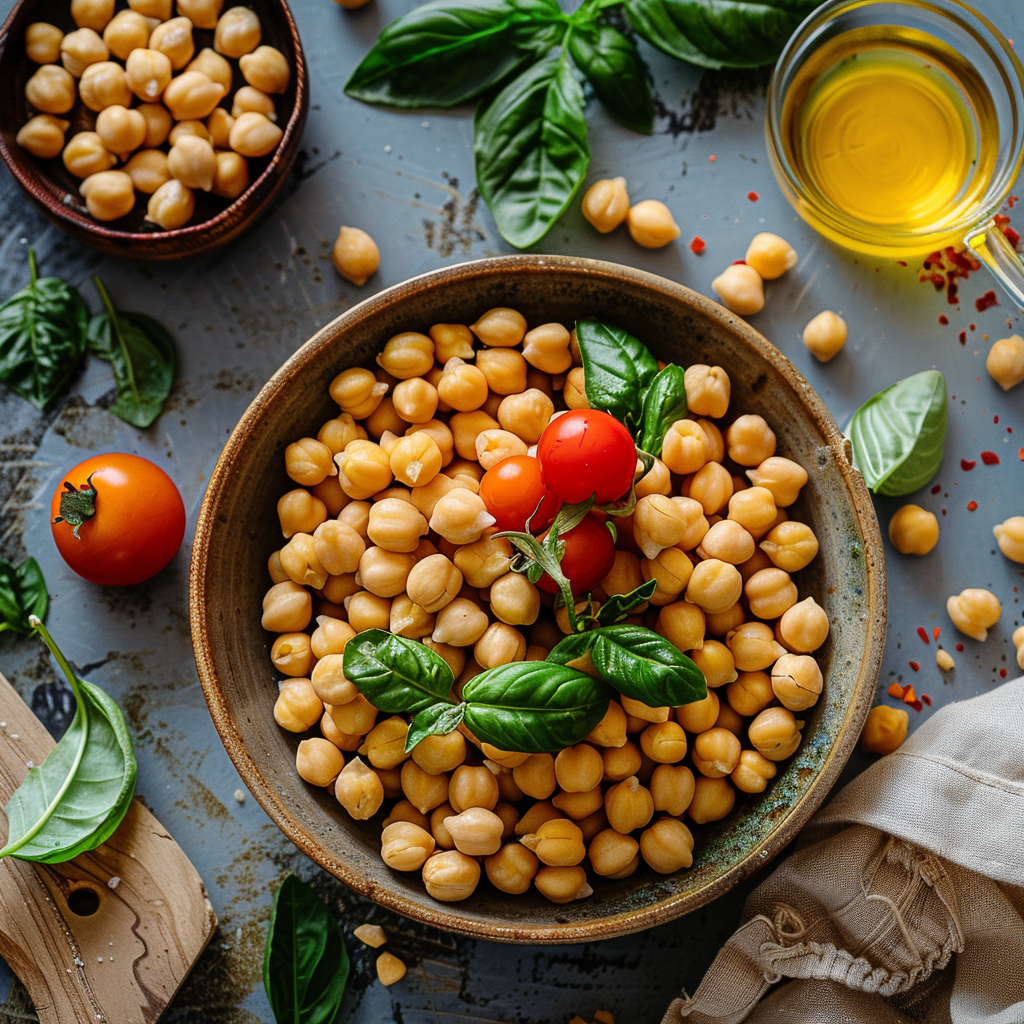 - 🥗 Salate & Beilagen: Gekochte Kichererbsen geben Salaten und Bowls Substanz und Textur.