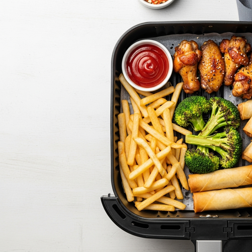 - Geeignete Lebensmittel: Besonders gut gelingen Kartoffelprodukte, Geflügel, viele Gemüsesorten, panierte Speisen und das Aufwärmen von Resten.