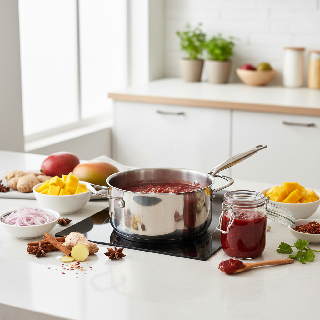 | Chutney ist zu flüssig | Zu kurz im Topf reduziert; zu wasserreiche Zutaten. | Länger köcheln lassen; Gelierprobe anwenden. |