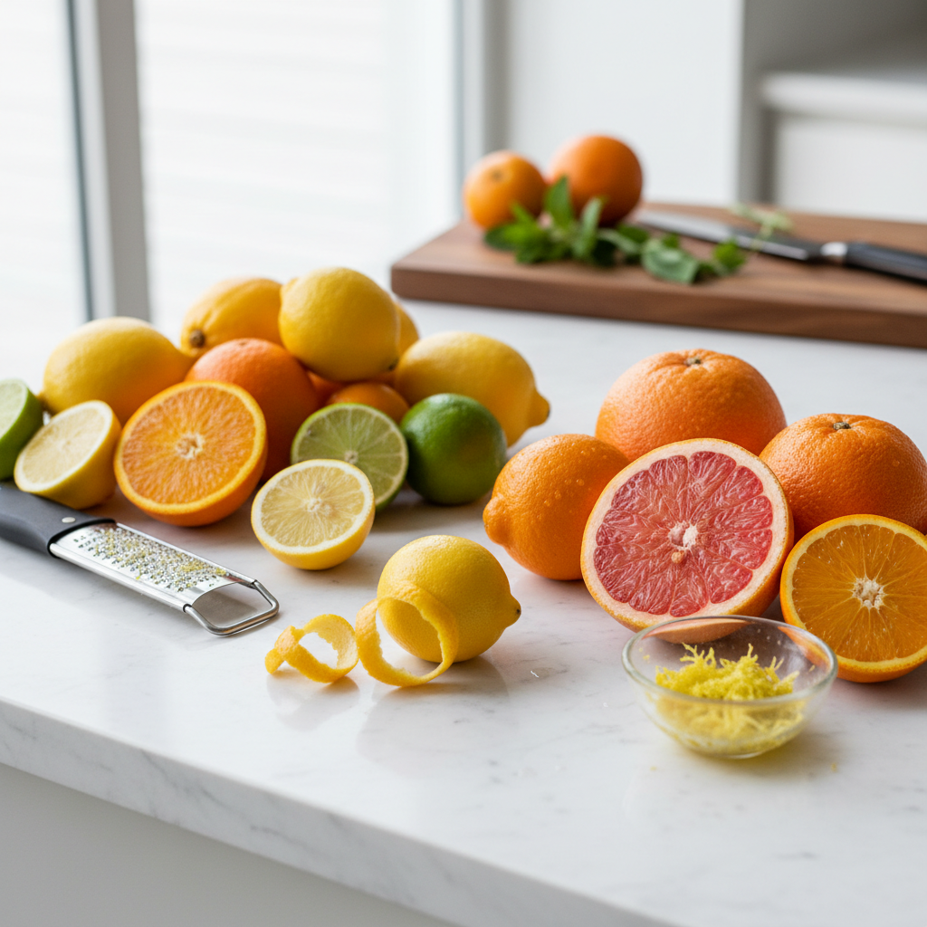 | Meyer-Zitrone | Mittel | Blumig, süßlich | Desserts, Backen, Cocktails |